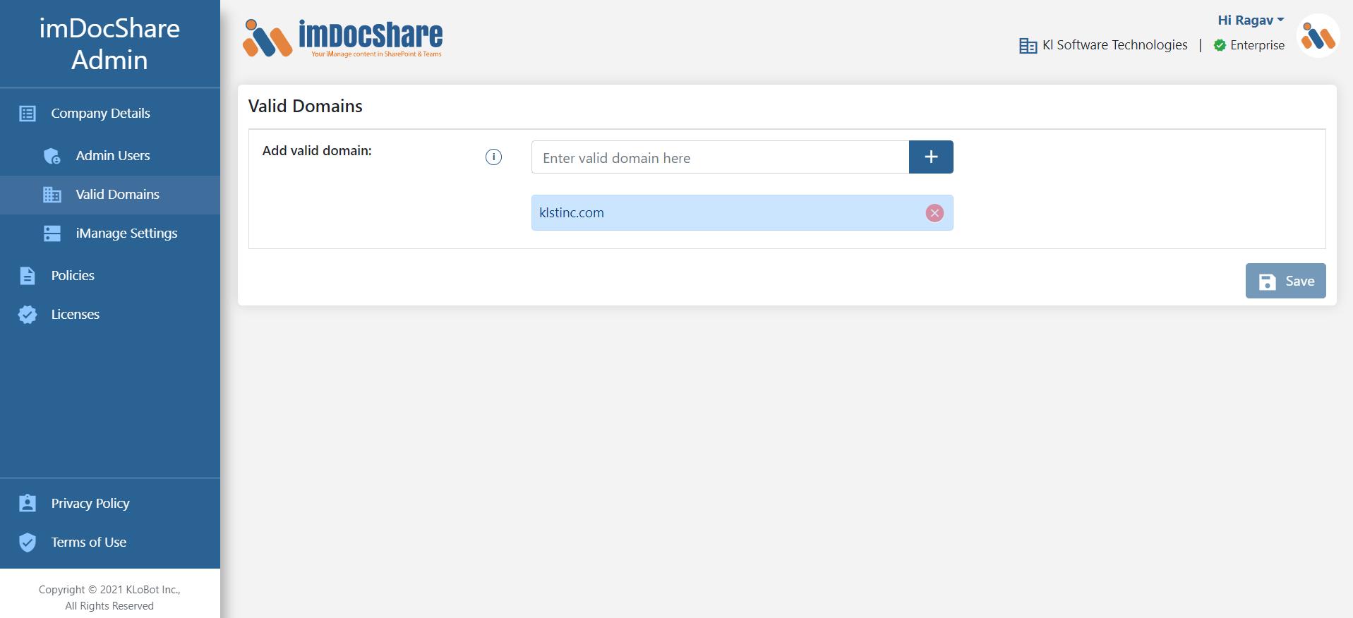 Here is a detailed walkthrough that goes through every step of accessing and manipulating the configs. To enter the imDocShare Admin App panel, the client will need to provide a valid License key. This license key is typically provided by KLST when imDocShare is purchased.